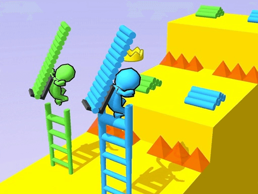 Ladder Run - Tap and hold to build ladder and climb over obstacles. Collect woods to build stairs and avoid obstacles, climb over walls and win the race.